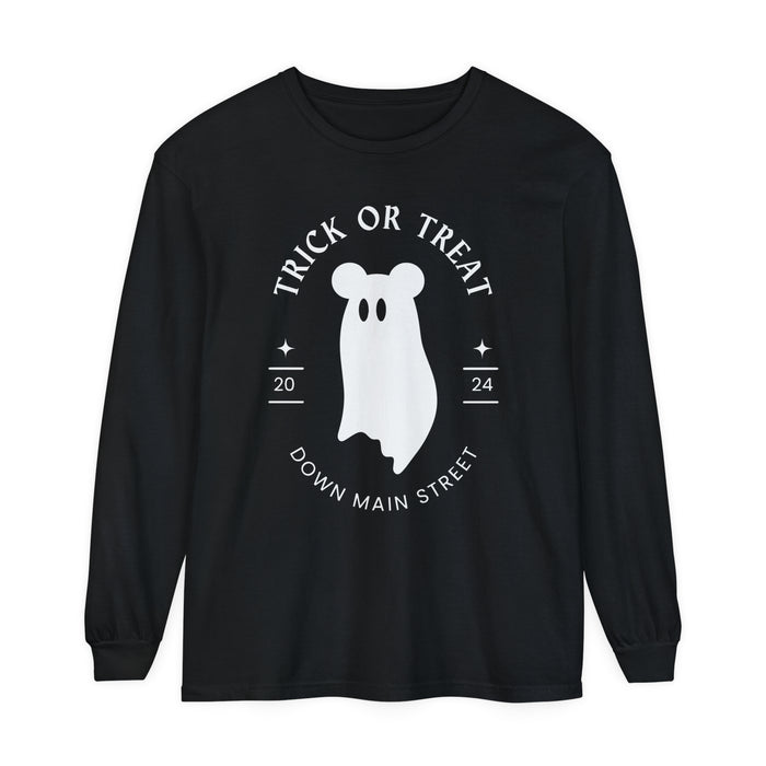 Trick or Treat Down Main Street Comfort Colors Unisex Garment-dyed Long Sleeve T-Shirt