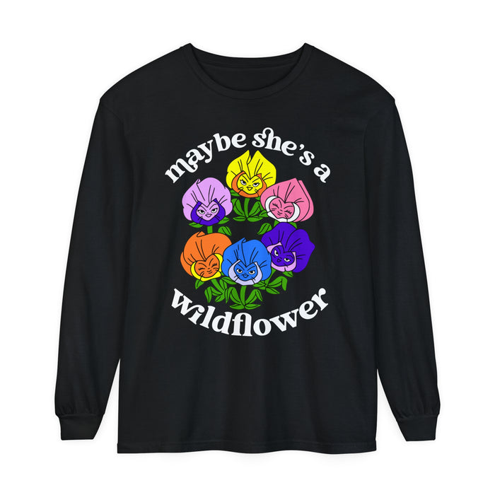 Maybe She’s A Wildflower Comfort Colors Unisex Garment-dyed Long Sleeve T-Shirt