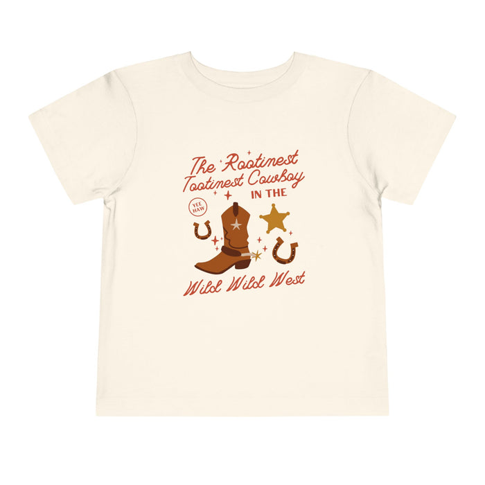 The Rootinest Tootinest Cowboy in the Wild Wild West Bella Canvas Toddler Short Sleeve Tee