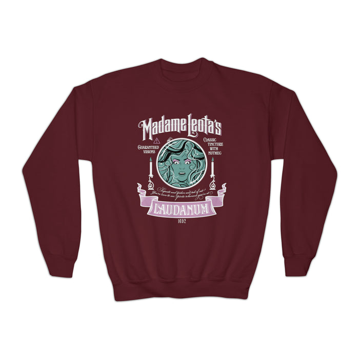Madame Leota’s Laudanum Teal Gildan Youth Crewneck Sweatshirt