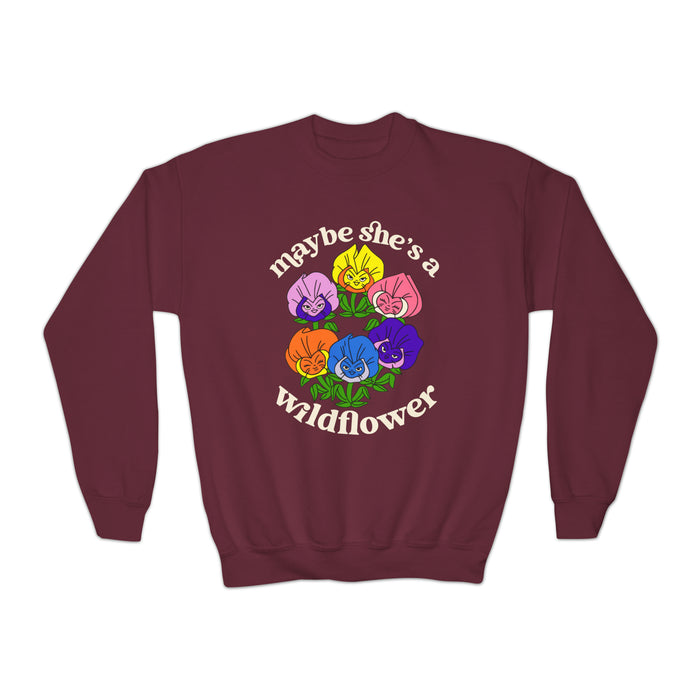 Maybe She’s A Wildflower Gildan Youth Crewneck Sweatshirt
